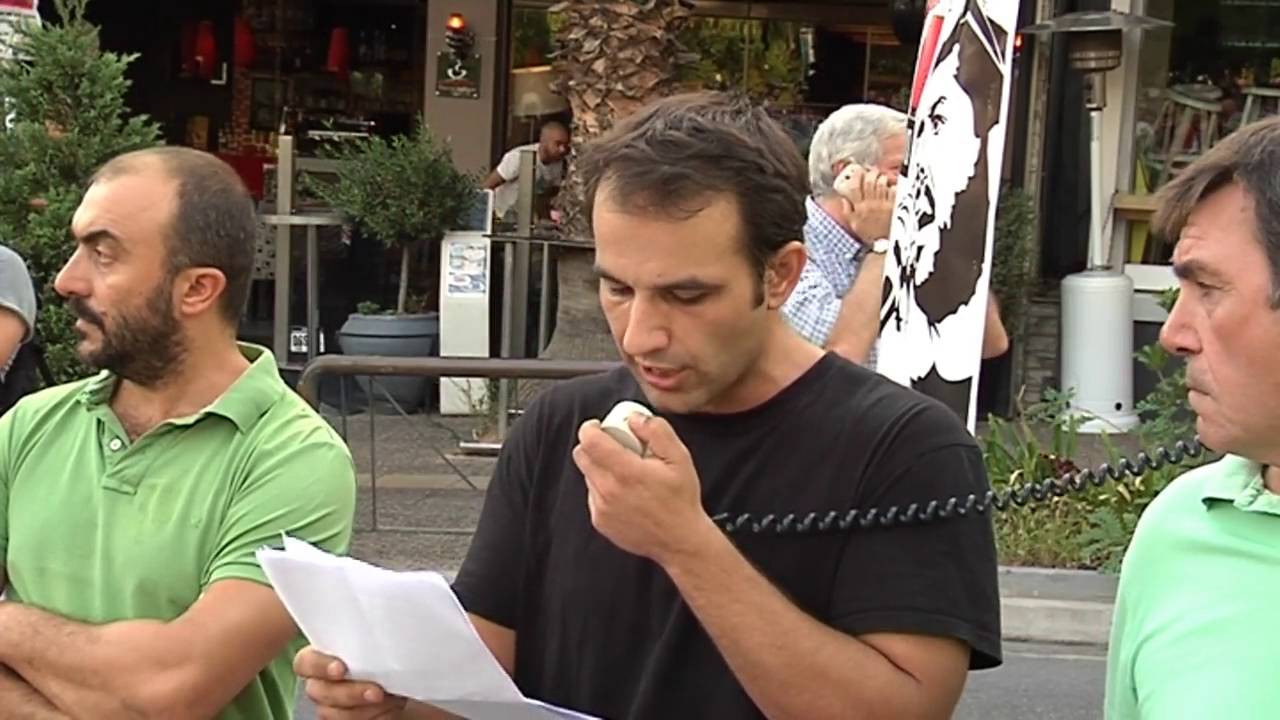 Ομιλητής στη συγκέντρωση ήταν ο Λεωνίδας Γραμματικός, μέλος της κεντρικής διοίκησης του Συνδικάτου Μετάλλου εκλεγμένος στη διοίκηση του ΕΚ Ελευσίνας.
