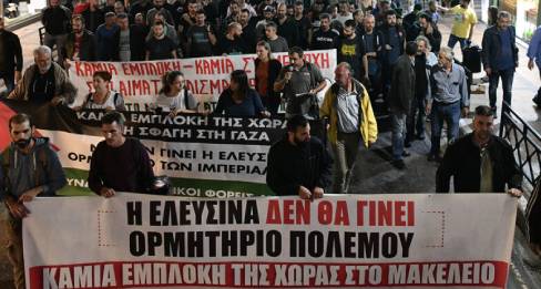 - Το κράτος που με τη συνδρομή όλων των κυβερνήσεων, είναι ο επίσημος συνεργάτης των Αμερικάνων, του ΝΑΤΟ και του σφαγέα Νετανιάχου, παραχωρώντας το στρατιωτικό αεροδρόμιο της Ελευσίνας στα γεράκια του πολέμου.